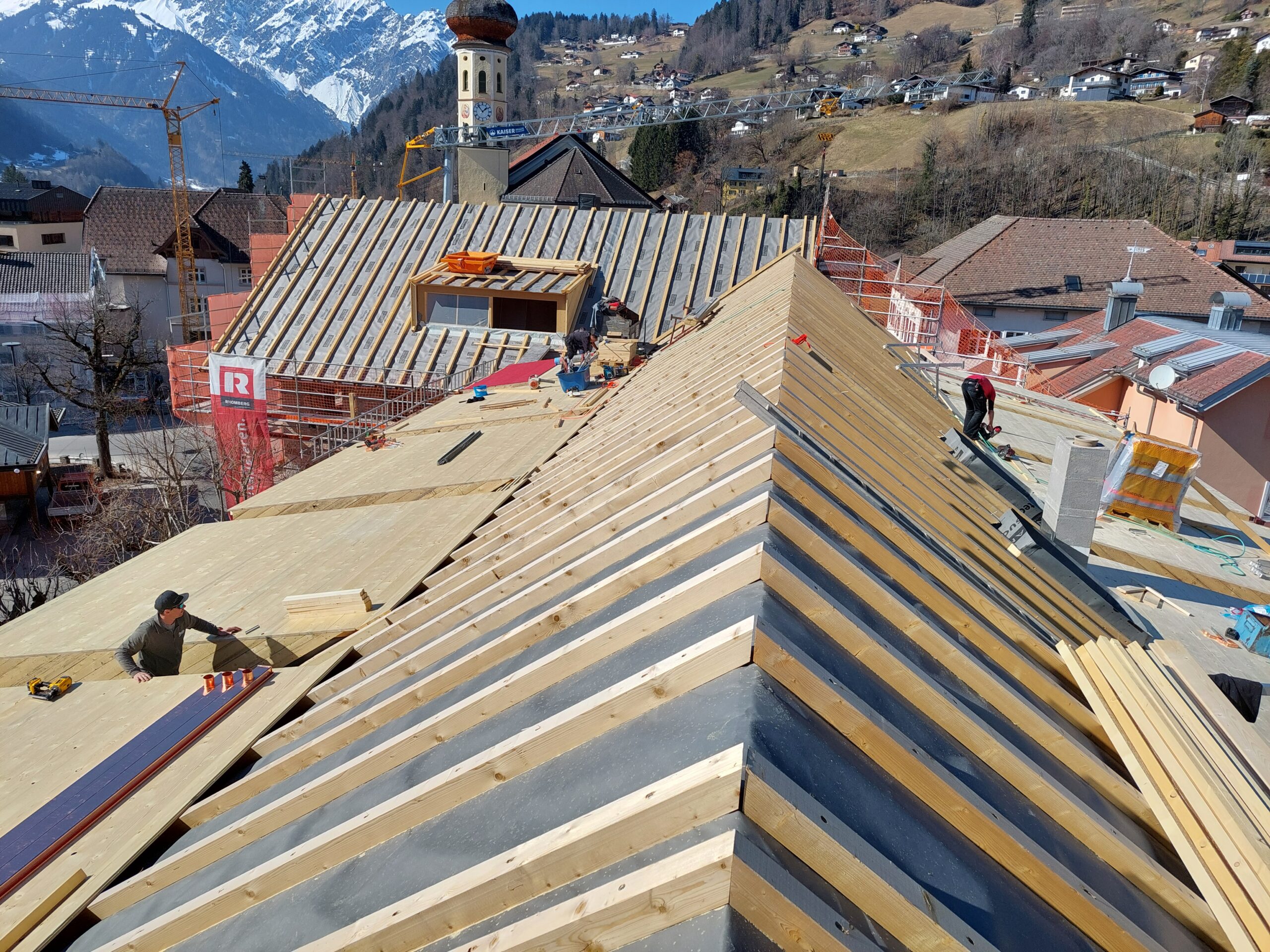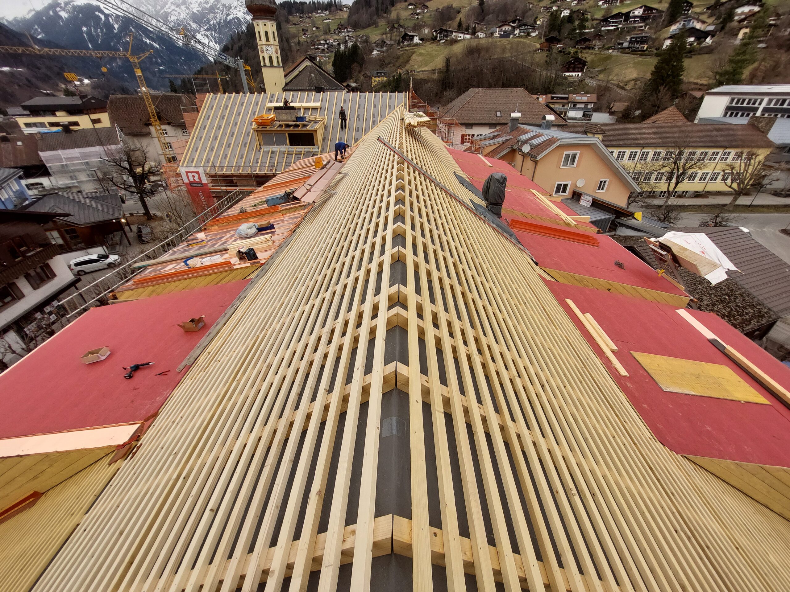 Die Dachhaut wurde in Blechbahnen ausgeführt.