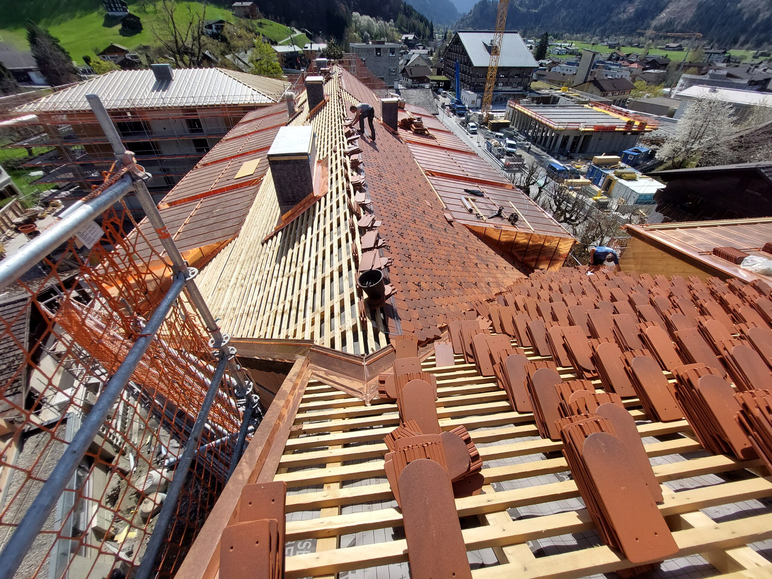 Dachdeckung Hauptdach wurde mit Biberschwanzziegeln gemacht, Außenhülle der Gauben sowie sämtliche Spenglerarbeiten wurden