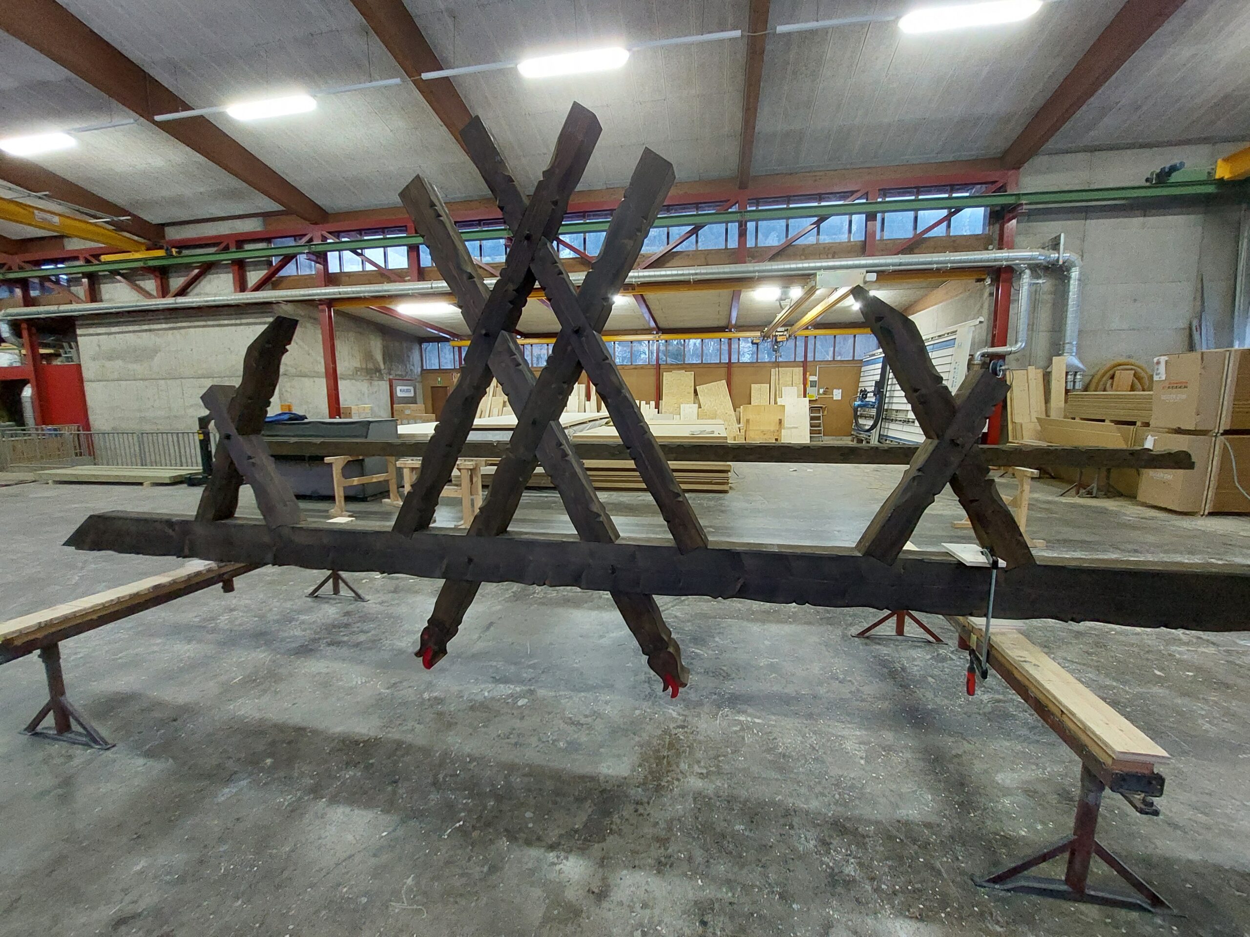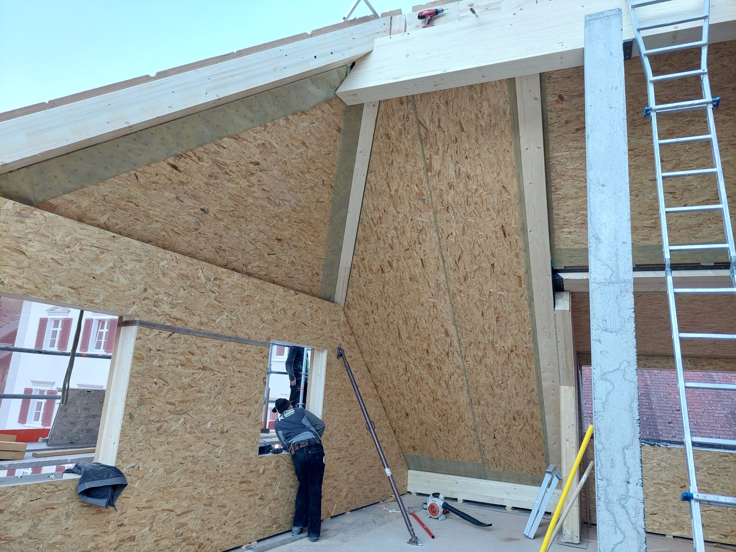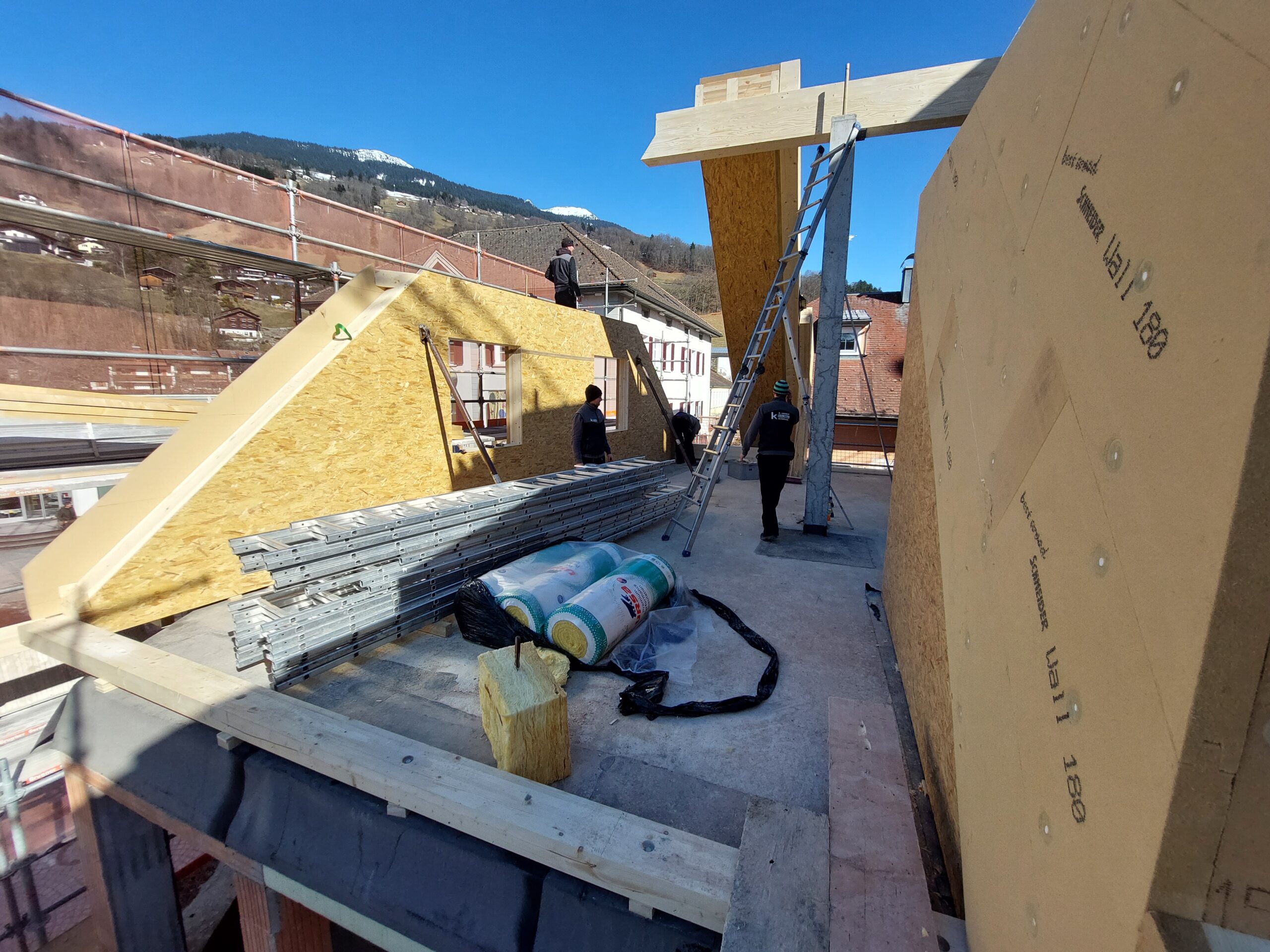 Komplettes Dachgeschoss im Hauptgebäude incl. Teil „Alte Post“ in Holzelementbauweise erneuert, sowie die Dachkonstruktion mit den Gauben als Multibox Elemente ausgeführt.